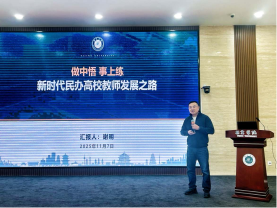 谢教授结合自身多年从教及管理经验,围绕新时代背景下民办高校教师的发展路径,分享了宝贵经验与实用建议,引导新教师在实践感悟与具体事务中锻炼成长。讲座内容翔实,语言生动,现场互动频繁,氛围轻松融洽。