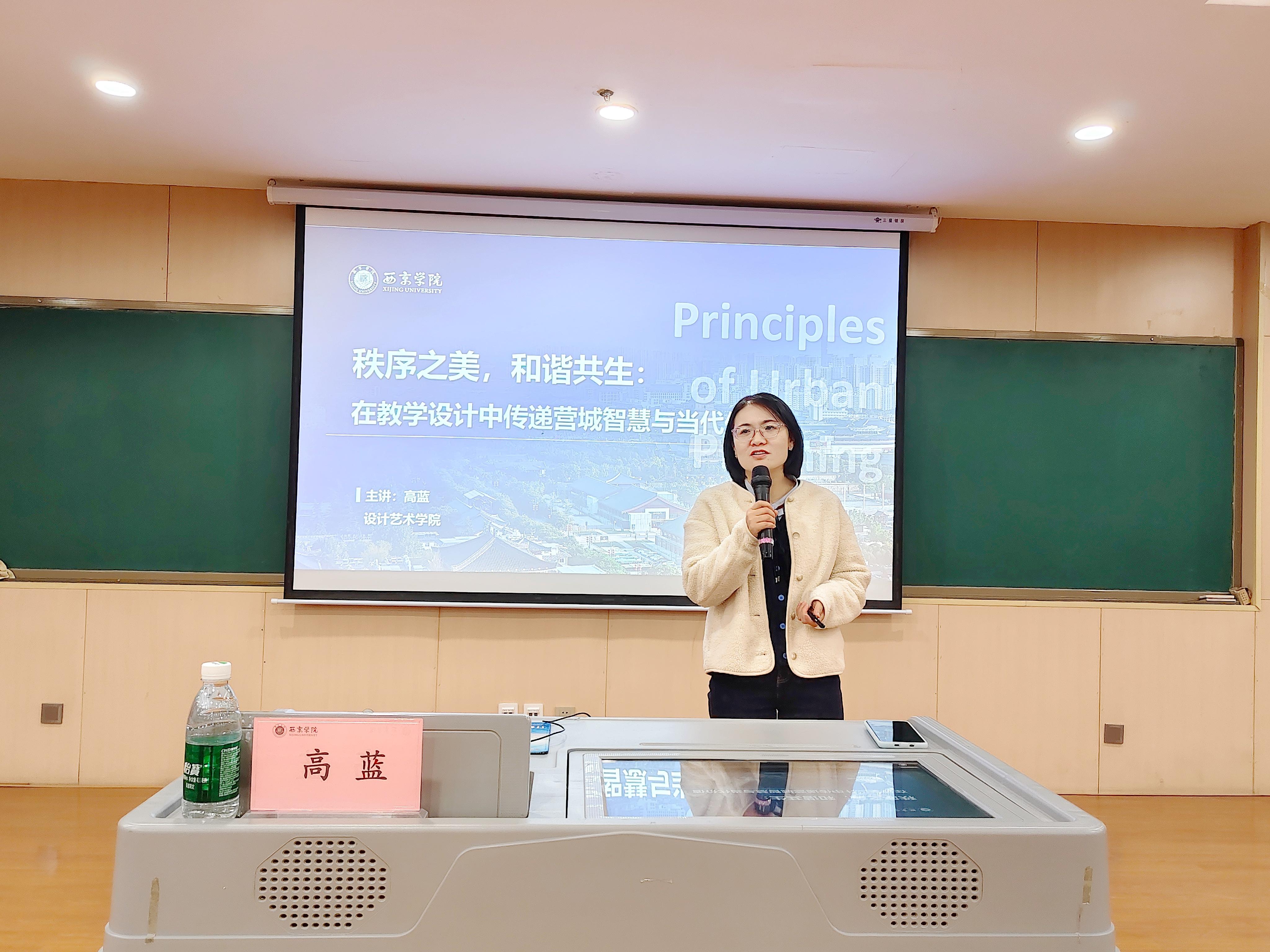 高蓝老师以“秩序之美,和谐共生:在教学设计中传递传统营城智慧与当代价值”为主题进行分享,结合自身教学实践,从“全局性、逻辑性、多样性、规范性”全面剖析了教学设计的核心要素,并重点讲解了课程思政在具体教学环节中的自然融入方式。